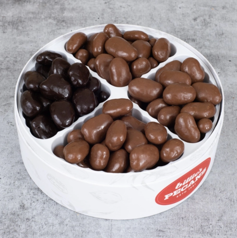 What’s better than chocolate? Choices of chocolates covering freshly picked pecans. You’ll love the delicate balance of sugar and cocoa.