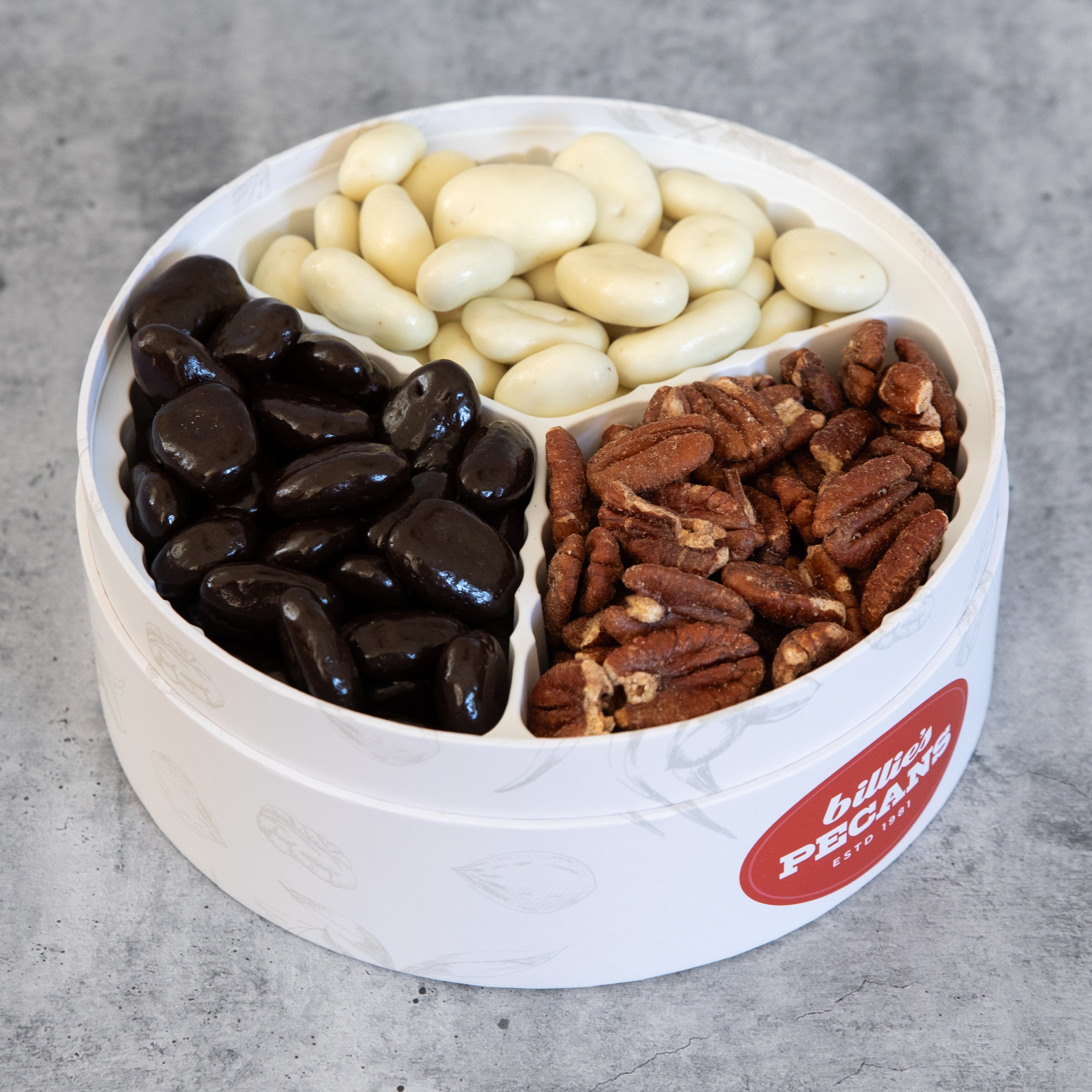 2 lb. box includes your choice of any three flavors: Chocolate Amaretto, Chocolate Grand Marnier, Cinnamon Spiced, Dark Chocolate, Milk Chocolate, Milk Chocolate Banana, Sugar-Free Chocolate, Toasted or White Chocolate Pecans