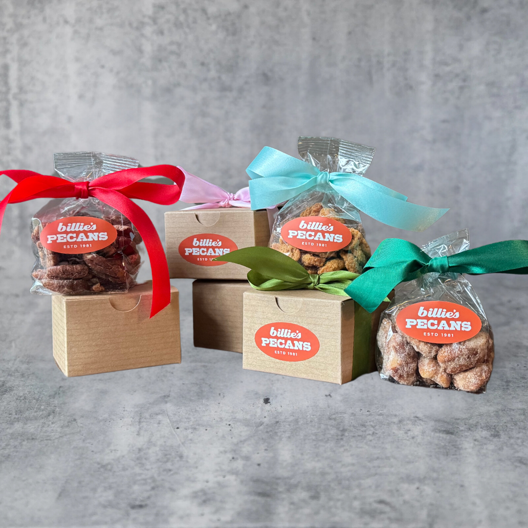 Looking for a special wedding, baby shower, or party favor for your guests? Or maybe you just want individual helpings of your favorite treats? Order a batch of Billie’s Pecans for the table, and leave your loved ones with something sweet and special. We promise you will be the hostess with the mostest.